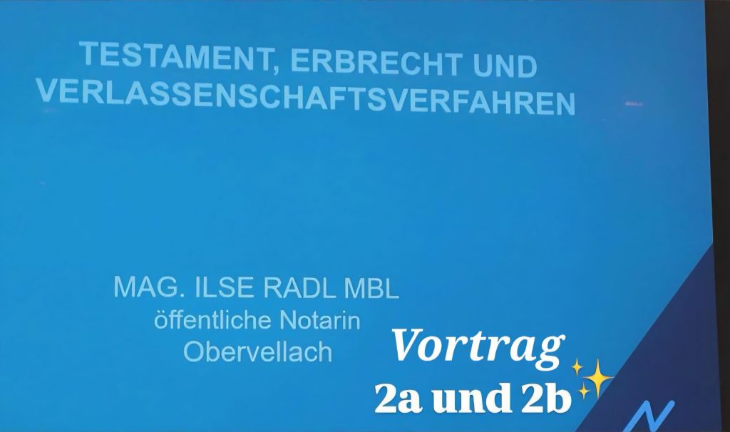 Die Schüler:innen der Klassen 2a und 2b nahmen an einem Vortrag zum Thema Erbrecht teil, der von Mag. Ilse Radl, MBL gehalten wurde. Dabei erhielten sie einen verständlichen Einblick in die wichtigsten Grundlagen des Erbrechts und erfuhren, wie Vermögen und Besitz rechtlich vererbt werden. Anhand anschaulicher Beispiele wurden unter anderem Themen wie Testament, gesetzliche Erbfolge und Pflichtteil erklärt. Der Vortrag bot den Schüler:innen eine interessante Gelegenheit, ein wichtiges rechtliches Thema näher kennenzulernen.